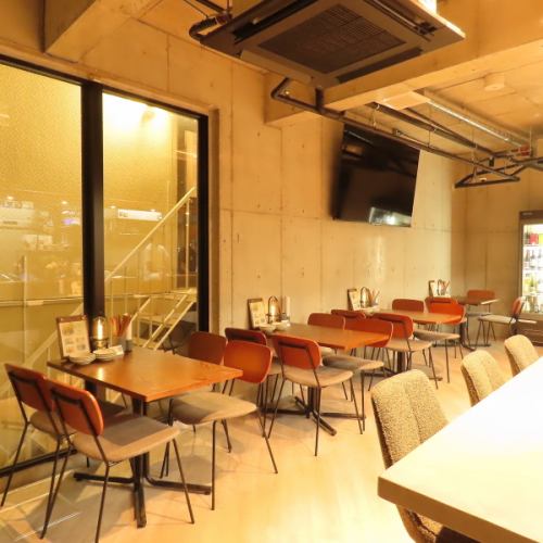 小宴会にピッタリなテーブル席。木の温もり溢れるモダン空間!